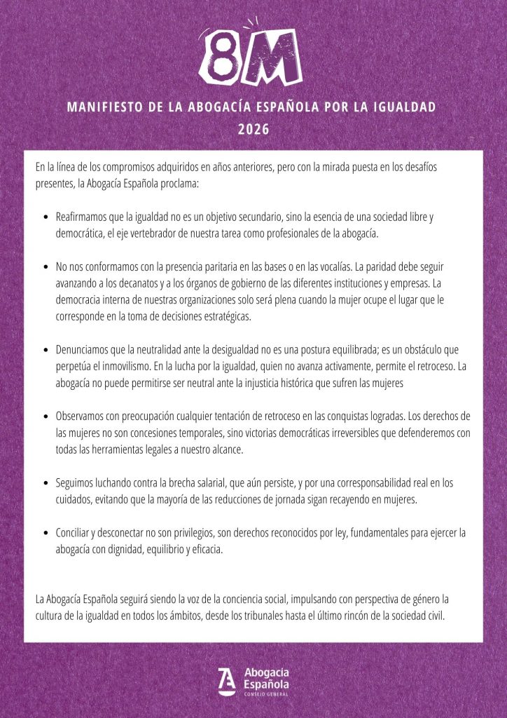 MANIFIESTO DE LA ABOGACÍA ESPAÑOLA POR EL 8M